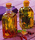 és a mustármagot forró vízzel leöntjük, majd lecsöpögtetjük. A leforrázott anyagokat üvegbe töltjük, majd ráöntjük az olajat. Lezárjuk, és 10 percre gyöngyöző forró vízbe állítjuk. 2 hónapra hideg, sötét helyre tesszük.