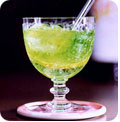 A behűtött hozzávalókat – a víz kivételével – egy pohárban összekeverjük, majd felöntjük a jéghideg ásványvízzel.