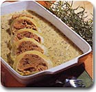A tököt megtisztítjuk, két végét levágjuk, hosszában félbevágva belsejét kanállal kikaparjuk és besózzuk, a tárkonyt finomra, a májat csíkokra vágjuk. A zsemlét vízben beáztatjuk, majd kicsavarjuk, hozzáadjuk a májat és a tojást, ízesítjük sóval, borssal, és jól összedolgozzuk, végül a kikapart tököt megtöltjük a töltelékkel. Alufóliába csomagoljuk, tepsibe vagy lábasba rakjuk, és ráöntjük a két dl vízben feloldott ételízesítőt és az ecetet, majd lassú tűzön – fedő alatt – megpároljuk. Közben elkészítjük a tárkonyos mártást. Világos vajas rántást készítünk, beletesszük a tárkonyt, és gyorsan átkeverjük, majd felöntjük a töltött tök párolólevével és a tejszínnel. Ízesítjük sóval, kevés cukorral, és jól kiforraljuk. A megfőtt tököt felszeletelve tálra rakjuk, és meglocsoljuk a forró tárkonyos mártással.