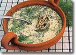 Kevés sós vízben a kis kockára vágott belsőségeket leforrázzuk, leszűrjük. A vajat felolvasztjuk, beletesszük a mogyoróhagymát, a péppé zúzott fokhagymát, a forrázott belsőségeket. Ha a belsőség és a hagyma megpuhult, felengedjük a félre tett főzőlével, felforraljuk, beletesszük a rizst, és puhára főzzük, majd hozzáadjuk a kockára vágott húst. Amíg a rizs fő, a tojássárgáját elkeverjük a citromlével, kevés forró főzőlével, és az egészet a forrásban levő leveshez adjuk. A tűzről levesszük, hozzákeverjük a finomra vágott kaprot és a petrezselyemzöldet.