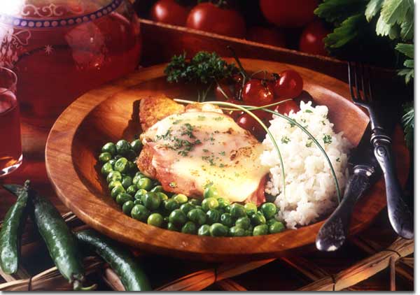 Párolt rizzsel vagy vajas, zöldpetrezselymes újburgonyával tálaljuk.