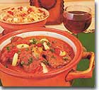 Kiadós étel, ami már csak vörösbortartalma miatt is igazán illik a szürethez. A must a kádban, az óbor pedig az ételben és a pohárban. Nemzedékek találkozása. Mindez megy a fénylõ forgó tányéron is, a kisméretû hullámok közt.