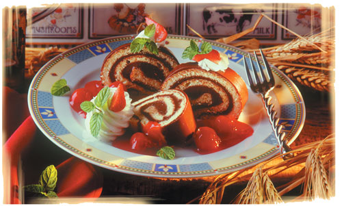 A piskótát kitekerve megkenjük szobahőmérsékletű Nutella mogyorókrémmel, és visszatekerjük. Hűtőbe tesszük, és amikor jó hideg, kívülről is bekenjük Nutellával. Így a mogyorókrém nem csurog le róla. Megdermesztjük, desszert-tálra tesszük, körberakjuk a friss piros gyümölcsökkel, és az egészet ízlésesen tejszínhabbal díszítjük.