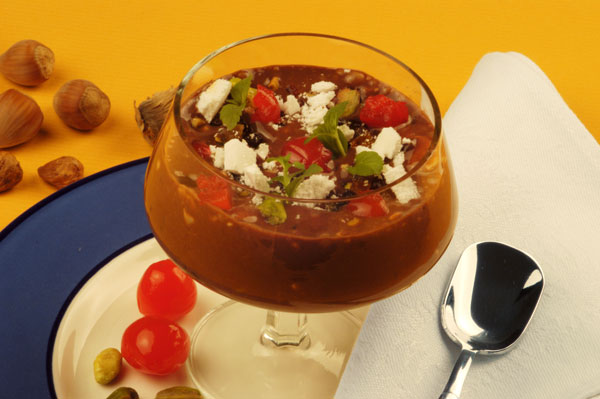 1 órán át hagyjuk állni a hűtőben. Kandírozott gyümölccsel, mentalevéllel és habcsókkal díszítve tálaljuk. Hintsük meg porcukorral.
