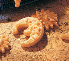 Tészta: A lisztben elkeverjük a sütőport, egy keverőtálba szitáljuk, és hozzákeverjük a pudingport. A többi hozzávalót is belekeverjük, és konyhai robotgéppel (dagasztó spirál) addig verjük, amíg egynemű tésztát nem kapunk. Ha ragad a tészta, tekerjük be fóliába, és tegyük egy ideig hideg helyre. A tésztát több darabban kb. 2 mm vastagságúra nyújtjuk (közben a többi tésztát a hidegben hagyjuk), és tetszés szerinti formákat szaggatunk belőle. A motívumokat egy sütőpapírral kibélelt tepsibe helyezzük, és a tejben elkevert tojássárgával megkenjük, tetszés szerint mandulával és barnacukorral meghintjük.
