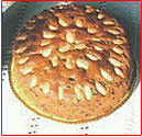 Mindkét kezünket hideg vízbe mártva a cipók tetejét laposra simítjuk. Fél mandulákat teszünk rá, és ízlés szerint kandírozott gyümölcsökkel díszítjük.