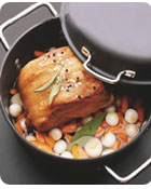 Tegyünk oda fél kiló kövér dagadónak nevezett, darabokra vagdalt sertés hust 2 liter sósvizben főni. Ha a hus már félig megfőtt, tegyünk közé egy tányérnyi koczkára vágott szép szinű sárga répát, nehány czikk fokhagymát, négy kanál czukorport és egy kávéskanál törtborsot. Mikor a sárgarépa jól megfőtt, tegyünk bele hidegvizzel feleresztett jó zsiros és szép piros rántást. E rántással főzzük pár perczig. Tálalásig tegyük félre.