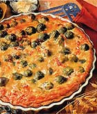 A megkelt tésztát simítsuk a kizsírozott formába, terítsük el rajta a lecsepegtetett kelbimbót, locsoljuk meg a tojásos tejszínnel, és előmelegített sütőben, 220 oC-on 30 perc alatt süssük át.