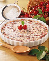 A tojásokat a cukorral és a sóval felverjük, majd beleszitáljuk a lisztet. 6 dkg olvasztott vajat a tejbe keverünk. 1,5 dkg vajjal egy porcelán (agyag) gyümölcstorta-formát kikenünk. A cseresznyét kimagozzuk, leszárítjuk, és a forma aljára szórjuk. Ráöntjük a tésztát, és rámorzsoljuk a maradék vajat. Meleg sütőben készre sütjük. Langyosan, porcukorral megszórva tálaljuk.