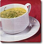A zöldborsót kifejtjük, megmossuk, és fél liter hideg sós vízben vagy maradék húslevesben feltesszük főni. Amíg a borsó fő, a sóskát megtisztítjuk folyó vízben megmossuk, lecsepegtetjük, és vékony metéltre vágjuk. A vajat megolvasztjuk, a lisztet hozzáadva világos rántást készítünk, amelybe belekeverjük a finomra vágott petrezselyemzöldet. A tojássárgáját a tejszínnel elkeverjük. Ha a borsó majdnem megpuhult, a rántással berántjuk és készre főzzük. A tűzről levéve kissé kihűtjük, majd szitán áttörjük, felforraljuk. Az előző levesnél leírt módon a tejszínnel elkevert tojássárgáját hozzáadjuk Tálaláskor a csésze aljára helyezzük a vékony metéltre vágott sóskát, rámerjük a levest és forrón tálaljuk.