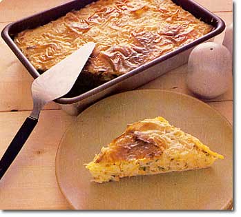 A kockatésztát kifőzzük, leöblítjük. A zöldségeket megtisztítjuk, majd nyersen lereszeljük, a petrezselyemzöldet és a kaprot finomra vágjuk, a túrót áttörjük, a tojásokat szétválasztjuk. A tojássárgákat a tejföllel, az olvasztott vajjal, a túróval simára keverjük, hozzáadjuk a lereszelt zöldségeket, a finomra vágott zöldeket és a megfőtt tésztát, sózzuk, borsozzuk, és az egészet összekeverjük. A tojások fehérjét kemény habbá verjük, és a masszához keverjük, hogy laza tömeget kapjunk. A réteslapot megnedvesített konyharuhán kiterítjük, az előkésztett tepsibe tesszük az első lapot, meglocsoljuk olajjal, ráöntjük a zöldséges masszát, majd a másik lappal befedve – természetesen ezt is meglocsoljuk olajjal – előmelegített, forró sütőben 30- 35 percig sütjük. Ekkor a közepébe egy húsvillát vagy hurkapálcát szúrunk, ha nem ragad rá a zöldséges töltelék megsült. Forrón tálaljuk. Adhatunk hozzá kapros, fokhagymás tejfölt.
