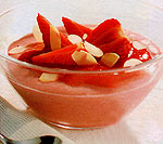 A krémhez az eper egyharmadát félretesszük, a többit négyfelé vágjuk, és villával összetörjük. A zselatint hideg vízben feloldjuk, és az eperpüréhez adjuk. A tojássárgákat a cukorral és a citromlével habosra keverjük. A tejszínt a vaníliáscukorral kemény habbá verjük, az eperpüréhez adjuk, és belekeverjük az egész eperszemeket. Tálkákba adagoljuk, majd két órára hűtőbe tesszük. Az öntethez az eper kétharmadát turmixoljuk, és belekeverjük a cukrot. A többi epret félbevágjuk. A krémet meglocsoljuk az öntettel, és megszórjuk az eprekkel meg a mandulával.