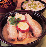 Mai menüajánlatunk borban párolt töltött pulykatekercs, desszertnek almás táska.