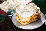 a felszeletelt süteményekre öntjük. Addig állni hagyjuk, amíg azok teljesen fel nem szívják a tejet. Magas szélű tűzálló tálat kivajazunk, szitált zsemlemorzsával megszórjuk, és az áztatott zsemlék felét a tálba tesszük. Rárakjuk a vékony szeletekre vágott almát, majd befedjük a másik felével. Tetejét elsimítjuk, baracklekvárral megkenjük. Jó meleg sütőben 30 percig elősütjük. Közben a tojásfehérjékből kemény habot verünk és másik fele kristálycukorral tovább verjük. A tojáshabot az elkészült tésztára egyenletes vastagságban elosztjuk. 10-15 percig gyenge tűznél még addig sütjük, amíg a hab jól felemelkedik és kissé megpirul. Tálalás előtt pihentetjük, vízbe mártott éles késsel daraboljuk.