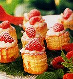 Minden pogácsa közepébe málnákat nyomkodunk, tejberizzsel befedjük, és 1-1 málnaszemet teszünk a tetejére. Porcukorral megszórva tálaljuk.