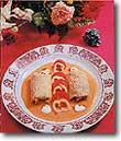 A vöröshagymát finomra, a húst apró kockákra vágjuk. A felhevített olajban a hagymát megfonnyasztjuk, a tűzről levéve belekeverjük a fűszerpaprikát, és hozzáadjuk a húst. Annyi vizet adjunk hozzá, hogy a húst ellepje, sózzuk és fedő alatt puhára pároljuk. Amikor megpuhult, tejfölös habarással sűrítjük, tejszínnel dúsítjuk, majd utánaízesítjük és átforraljuk. A húst kiszedjük, és finomra összevágjuk, kevés őrölt borssal ízesítjük. Az átszűrt mártásból annyit tesszünk bele, hogy kenhető legyen. Ezt a húsmasszát egyenletesen elosztjuk a palacsintákba, széleit felhajtjuk, összegöngyöljük. Tűzálló edénybe rakjuk, sütőben átforrósítjuk, és tálaláskor a forró paprikás mártással bevonjuk.