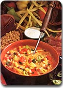 A zöldbabot megtisztítjuk, 2 cm-es darabokra, a vöröshagymát és a petrezselymet finomra vágjuk. A zöldpaprikát kicsumázzuk, és feldaraboljuk apró kockára, a paradicsom héját lehúzzuk (pár másodpercre forró vízbe tesszük), és kockákra vágjuk. A szalonnát apró kockára, a sonkát vékony csíkokra daraboljuk. A húsos szalonnát kiolvasztjuk, és leszűrjük. A zsírban a vöröshagymát megpirítjuk, a tűzről levéve belekeverjük a fűszerpaprikát, és hozzáadjuk a zöldbabot, zöldpaprikát, paradicsomot. Együtt pár percig pirítjuk, majd felöntjük kb. egy liter vízzel. Ha felforrt, beletesszük a sonkát, a tarhonyát, és megsózzuk, majd fedő alatt takaréklángon (néha kevergetve) puhára főzzük, végül a tejfölt hozzáadva összemelegitjük (nem forraljuk fel, mert a tejföl kicsapódhat), és ha szükséges utánízesítjük. Tálaláskor megszórjuk a kisütött szalonnával és a finomra vágott zöldpetrezselyemmel.