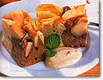A tojásokat a tejszínnel, 2 ek. cukorral, a fahéjjal, a szerecsendióval és a durvára vágott dióval habosra keverjük. Az almákat meghámozzuk, magházukat kivájjuk, kör alakban felszeleteljük.