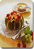 A sárgadinnyéket félbevágjuk, magját kikaparjuk. A gyümölcs húsát karalábévájóval vagy kávés kanállal kivájjuk, figyelve arra, hogy a héját ne vágjuk át. A gyümölcsöket megmossuk, és ha szükséges, feldaraboljuk. A bort a likőrrel, a porcukorral és a citrom levével egy üvegtálban összekeverjük, beletesszük a darabolt gyümölcsöket és a kivájt sárgadinnyehúst, óvatosan összekeverjük, majd a kivájt sárgadinnyékbe töltjük, és fogyasztásig hűtőszekrényben tartjuk, hogy jól áthűljön. Fogyasztáskor díszíthetjük vagy külön adhatunk mellé keményre felvert tejszínhabot.