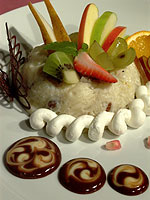 A kihűlt tejberizst tányérra borítjuk, a vaníliás és Nutellás pudingot öntetként a rizshez adjuk. A desszertet tejszínhabbal, sok-sok friss gyümölccsel tálaljuk.