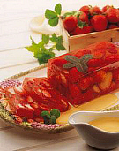 A vaníliás krémhez a tejet a vaníliáscukorral megmelegítjük. A tojássárgáját a cukorral fehéredésig verjük, majd gyors mozdulatokkal belekeverjük a meleg tejet. Gyakori kevergetés mellett sűrű krémmé főzzük. Eperdarabkákkal díszítve, a krémmel tálaljuk a kocsonyát.