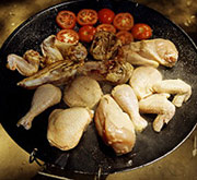 Amennyiben darabolva (comb, szárny, mell, aprólék) vásároltuk frissen a csirkét, a bőr átvizsgálása után megmossuk, lecsepegtetjük. A baromfiipar forgalomba kerülő szárnyasai egészben belezettek.