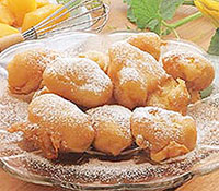 A tésztához a lisztet, a tojássárgákat, az apróra vágott citromhéjat, a rumot, a cukrot, csipetnyi sót és az olajat robotgéppel összedolgozzuk, majd tovább keverve apránként beleöntjük a tejet. Konyharuhával letakarjuk, és 1 órára meleg helyre tesszük. A tojásfehérjét kemény habbá verjük, majd a megkelt tésztába dolgozzuk. A sütőtököt nagy kockákra vágjuk, a tésztába mártjuk, és forró olajban pirosra sütjük. Amikor kész, papírtörlőre szedjük, hogy a fölösleges zsiradékot felitassuk. Porcukorral megszórva, forrón kínáljuk.