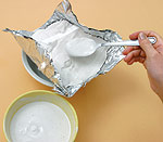Ahhoz, hogy könnyebben kivitelezhető legyen a sablon, egyszerűsített módszert ajánlunk: körülbelül 15 cm-enként hajtsunk egymásra öt-hat réteg alufóliát. Ezt gondosan simítgassuk az arcunkra, ez lesz az öntőforma. A formát helyezzük egy mélyebb tálba, ezen belül körben támogassuk meg az elálló részeket, hogy a gipsz súlyától ne nyílhasson szét a forma. (Egy-két helyen ragasztószalaggal is megerősíthetjük). Lassan öntsük ki gipsszel úgy, hogy a szélein is aránylag erős réteget alkosson (2.b). A fóliasablon sérülékeny, lehet, hogy az öntvényen egy kis bekevert gipsszel pótlásokat kell majd végezni, vagy lefaragni belőle.