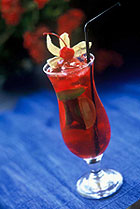 A pohárba szűrjük 3-4 cikk lime-ot dobunk, és erre szűrjük az összekevert italt, végül feltöltjük tonikkal. Az elkészült koktélt koktélcseresznyével díszítsük