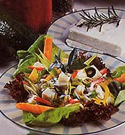 A majonézt és a joghurtot összekeverjük, megszórjuk Delikáttal, majd mustárral és porcukorral pikánssá tesszük. Végül beleforgatjuk a finomra vágott kaprot. A zöldségeket apró kockákra vágjuk. Keveset félreteszünk a díszítéshez, a többit pedig a joghurtos majonézhez adjuk, majd a felkockázott fetát is beleforgatjuk. A salátát hűtőbe tesszük néhány órára, hogy az ízek összeérjenek, majd a félretett zöldségekkel díszítve tálaljuk.