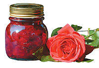 A szirmok keserű, fehér, elvékonyodó alsó részét távolítsuk el. Egy nagy lábosban forraljuk fel a vizet, tegyük bele a szirmokat. Lassú tűzön 2-3 percig főzzük, hogy a szirmok felpuhuljanak. Adjuk hozzá a befőzési cukrot és a citromlevet, kevergetve főzzük, hogy elolvadjon a cukor, majd forraljuk 6-8 percig. Öntsük hozzá a rózsavizet, s még forrón töltsük csavaros üvegekbe. Zárjuk le, és állítsuk negyedórára a tetejükre, majd fordítsuk talpukra az üvegeket.