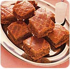 Ezután ráhintjük a zsemlemorzsát, és egyenletesen elosztjuk rajta a kihűlt almatölteléket, majd beterítjük a másik tésztalappal úgy, hogy az élek és a sarkok fedjék egymást. A tészta felületét felvert tojással megkenjük, és villa segítségével berácsozzuk, megszurkáljuk, és visszatéve a sütőbe megsütjük. Kihűlés után négyzet alakúra daraboljuk, és porcukorral meghintjük.