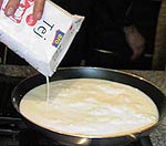 A tejet a vaníliával és a citromhéjjal forraljuk fel. Közben a tojást a cukorral verjük fel habosra, és tegyük bele a lisztet. A felforrt tejhez adjuk hozzá a lisztes-tojásos keveréket, és lassú tűzön, gyorsan kavargatva főzzük.