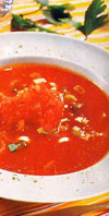 A zöldségeket (a paradicsom kivételével) kis kockákra vágjuk, és az olívaolajon megpároljuk, majd még melegen az egészet a paradicsomlébe keverjük. A fokhagymát lereszeljük, a paradicsomot kis kockákra aprítjuk, ezt is a levesbe keverjük. Sóval, borssal, porcukorral ízesítjük, a bazsalikommal és a zöldborssal megszórjuk. Citromlével utánaízesítjük, és jégbe hűtve tálaljuk.