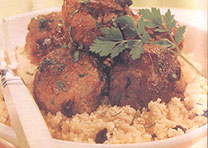 Nagy tálban összekeverjük a húsokat a tojással, a zsemlemorzsával, a pisztáciával, a finomra vágott hagymával, a zúzott fokhagymával, a petrezselyemmel, a fűszerkeverékkel és a kis kockákra vágott aszalt szilvával.