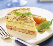 Tortát sütni omlettbõl? Miért ne? Alsó réteg: paradicsommal, középsõ réteg hagymával, felsõ réteg bazsalikommal. Utána már csak össze kell sütni, és eheted is!