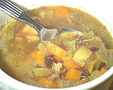 Egy nagy lábosba tegyél különböző húsféleségeket, friss kakukkfüvet, rozmaringot, majoránnát, 6-8 szál kisebb pórhagymát (a nagyobb szálból egy-két darab kell, 2-3 centis karikára vágva), és néhány szál répát. Öntsd fel bőségesen vízzel, tegyél rá fedőt, és kis lángon főzd két-három órán át, ha szükséges, az elfőtt vizet pótold.