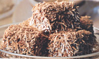 5. Mártsd be teljesen a tortadarabokat ebbe a keverékbe. Hempergesd meg a kókuszreszelékben, és öntsd rá az ivócsokoládét. Tárolásig hűtsd be.