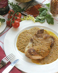 Hozzávalók: 2 egész tandoorban sült csirke 4 cm-es fahéjrúd 3 fekete kardamomhüvely elmorzsolva 3 zöld kardamomhüvely elmorzsolva 3 szegfűszeg 2 cm-es gyömbérgyökér-darab apróra vágva 1 kg feldarabolt paradicsom 2 közepes hagyma apróra vágva 8-10 gerezd fokhagyma apróra vágva 8 zöld chilipaprika apróra vágva 400 g vaj 1 kávéskanál őrölt cayenne bors 1 kávéskanál cukor 1/2 kávéskanál só 125 ml tejszín 1/2 kávéskanál Garam Masala por (boltban kapható, v. recept a Megkóstolni Ázsiát c. könyvben) kevés őrölt zöld bors Elkészítése: Daraboljuk fel a csirkéket. Az eredeti szokás szerint nem kell kicsontozni a csirkehúst, mielőtt felhasználjuk, de én, ha tehetem, mégis mindig csontnélküli húst használok. A fahéjat, kardamomot, szegfűszeget, gyömbért, hagymát, fokhagymát, chilipaprikát és a paradicsomot keverjük össze egy nagyobbacska főzőedényben és időnként megkavarva főzzük addig, amíg a paradicsom pépessé nem válik. Ha ez megtörtént, az egészet dolgozzuk össze péppé egy turmixgépben, majd passzírozzuk át egy szűrőn. Tegyük vissza a pürét a főzőedénybe, és adjuk hozzá a vajat, a cayenne borsot, a cukrot és a sót. Főzzük, míg kissé összeáll a kevercs. Adjuk mindehhez a tejszínadag felét, valamint a feldarabolt (tandoorban előre sütött) csirkehúst, és közepes lángon nagyjából 5 percig főzzük össze a szósszal. Adjuk hozzá (egy evőkanálnyi kivételével) a maradék tejszínt és a Garam Masala keverék felét (és esetleg a zöldborsot). Jól keverjük el, és egy percig hagyjuk ismét összefőni a hozzávalókat. A fel nem használt tejszínnel meglocsolva, illetve a maradék Garam Masala porral finoman meghintve tálalhatjuk az ételt, mellé Basmati rizs vagy/és indiai kovásztalan kenyér (pl. naan) illik. |