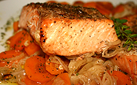 És a konyhában boldogok voltunk. Néztük a csodálatos lazacot, a friss zöldségeket, fűszerket, és belevetettük magunkat előzetes varázslás és rettentő logisztika nélkül. Talán pont ettől volt annyira életszerű, hisz továbbra sem ugráltak körül minket ételstylistok.