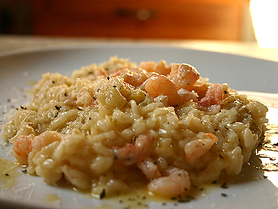 A lángot vedd kisebbre, és ekkor kezdődik a rabszolgasors. A meleg alapléből egy szedőkanállal öntsd nyakon a rizst, és kavargasd. Várd meg, míg a rizs lassan, de biztosan magába szívja az alaplevet, aztán jöhet a következő kanál alaplé