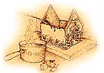Először az alaphoz ragasztjuk a két oldalt és a két homlokzatot, ezután illesztjük rá a két tetőoldalt, végül a gerincen végigfutó mandulasort és a kis háromszög alakú homlokzati díszt. Ha melléfolyik a karamell, az sem baj, így is jó a házikó.