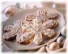 A díszítéshez hámozott mandulát, tökmagot és tésztából formázott darabokat használtunk.