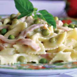 A sonkamaradékok hasznosítására húsvét után a szinte klasszikusnak és hagyományosnak mondható sonkás tészta adja magát, most egy kis zöldborsóval bolondítottuk meg.