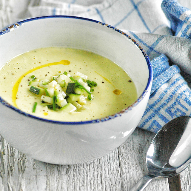 Egy lábosban közepes lángon összeolvasztom a vajat az olajjal. Rászórom a vöröshagymát, finoman megsózom, és 3-4 perc alatt puhára párolom. Ráreszelem a fokhagymát, átkeverem pár másodperc alatt, majd jöhet rá a kukorica. Felöntöm az alaplével, sózom, borsozom, és lefedve 20-25 percig főzöm. Ha zsenge a kukorica, rövidebb idő kell. A főzési idő felénél hozzáadom a cukkinit is. Ha elkészült, az egészet turmixgépbe öntöm és teljesen összepürésítem. Ha teljesen krémes levet szeretnénk, akkor egy szűrőn passzírozzuk át az egészet. Öntsük vissza a lábosba, adjuk hozzá a tejszínt, és forraljuk vele 1 percig. Ízesítsük sóval, borssal, citromlével. Tálaláskor csorgassuk meg olívaolajjal, és szórjuk meg apróra vágott cukkinikockákkal. Ha véletlenül van némi friss kaprunk, bátran szórjuk meg vele a levesünket. 2 adag lesz belőle.