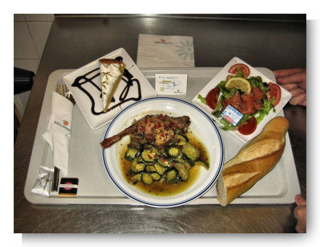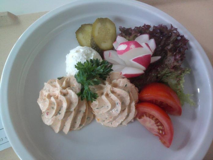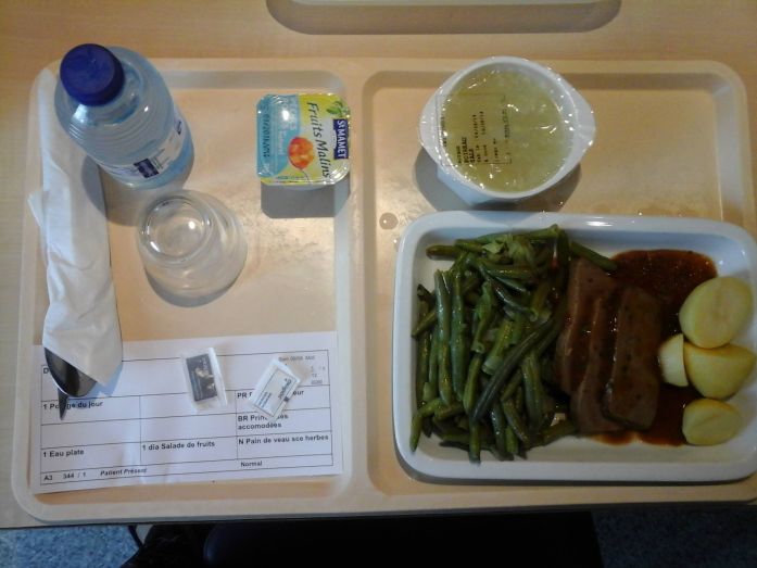 1. Ízléses, zöldséges, betegen is szívesen elfogadnánk ezt a menüt, amit egy szimpla állami kórházban hoztak ki. Ez Ausztria, és ha valakinek ez nem tetszik, eláruljuk, A, B, C, D és E menü között lehet választani, és itt egyébként héjában főtt krumplit adtak a zöldségek mellé.
