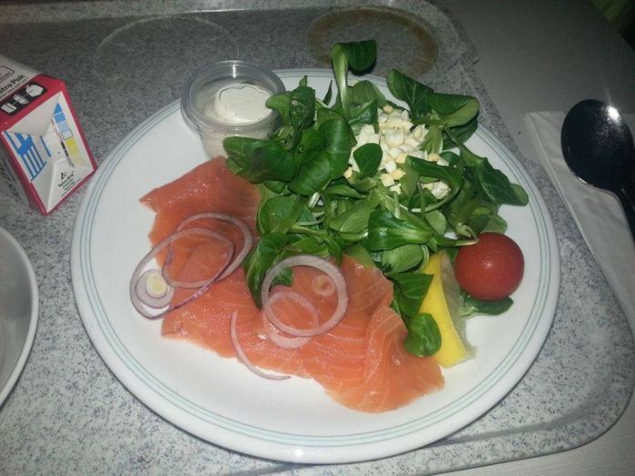 16. A korrektség kedvéért muszáj hozzátenni, hogy itthon is tudnak azért kívánatosan kinéző ételt adni, ha ez nem is nevezhető egészségmenünek. A hírek szerint finom is volt, hát még a szilvás sütemény.