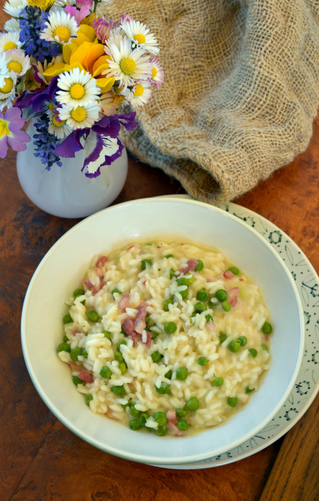 Szalonnás-zöldborsós rizottó