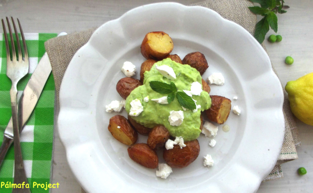 Sütőben sült parázsburgonya mentás zöldborsókrémmel