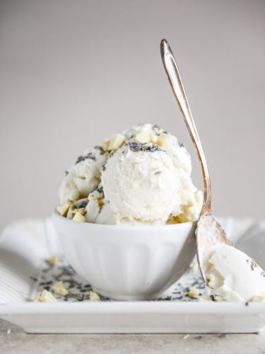 Önts tűzálló edénybe 6 dl tejszínt, 3 dl tejet, 15 dkg cukrot, 4 evőkanál szárított levendulát és csipetnyi sót. Lassú tűzön folytonos kevergetés mellett forrásig melegítsd. Vedd le a tűzről, adj hozzá 2 teáskanál vaníliaaromát. Hagyd a fagylaltkrémet egy órán át állni, amíg a levendula megszívja magát. A 60 perc leteltét követően merd ki a levendulát a fagyiból, majd tedd további egy órára a hűtőbe. 10 dkg fehércsokit darabolj apróra, és keverd el a lehűtött fagyiban. Fagyaszd 4-6 órán át készre a levendulás-fehércsokis fagylaltot.